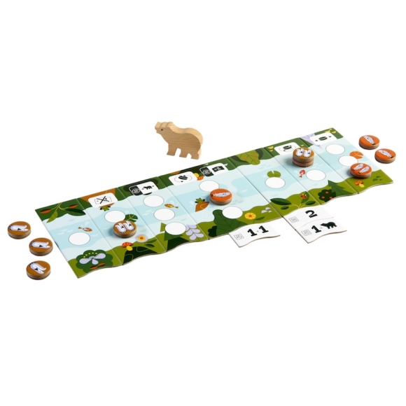 7 fichas de río - 3 fichas de carrera - 1 figura de oso - 10 peones